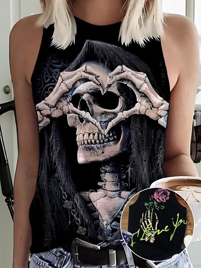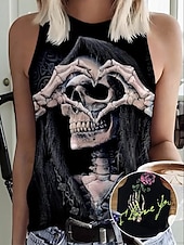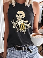 More information about Halloween Women's Shirt Blouse Graphic Letter Bohemia Hawaiian Ethnic Sleeveless Crew Neck Regular Tops Daily Print Black Dark Gray Summer Spring