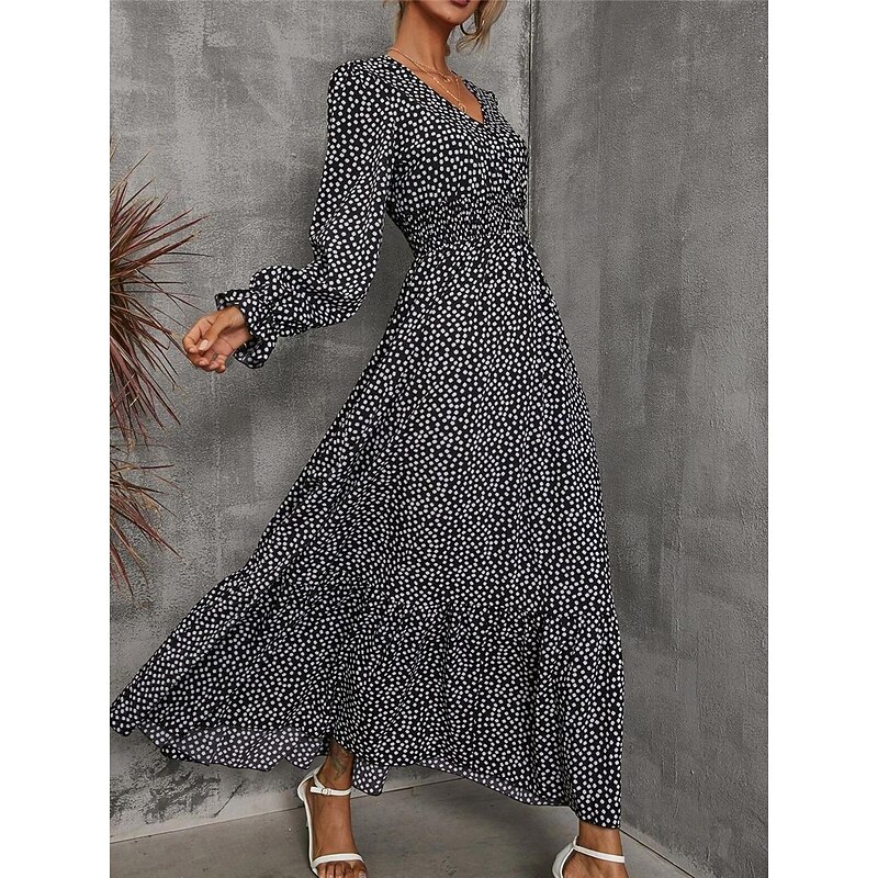 More information about Women's Formal Dress Floral Ruffle V Neck Long Dress Maxi Dress Elegant Stylish Daily Long Sleeve Fall