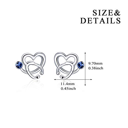 AOBOCO Nurse Earrings 925 Sterling Silver Stethoscope Studs Earrings Simulated 12 Months Birthstone Crystal from Austria, Graduation Jewelry Gifts for Nurse Doctor RN Medical Student 5