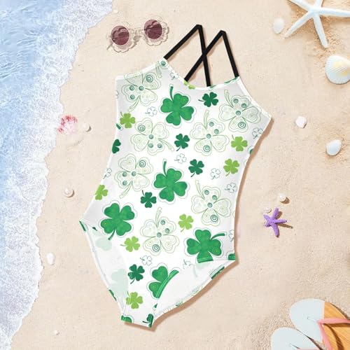 ZZKKO Green Shamrock Girls Swimsuit One Piece Bathing Suit for Baby Girls' Swimwear 3-10T 1