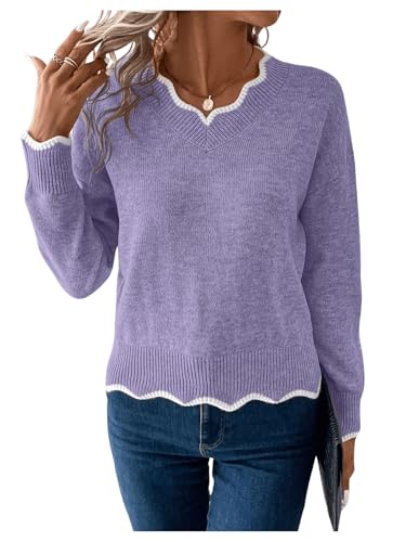 More information about MakeMeChic Women's 2024 Fall Sweaters Long Sleeve Lettuce Trim Lightweight Ribbed Knit Casual Pullover Sweater Tops