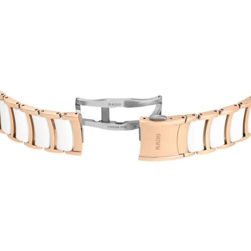• Bracelet: Polished Rose Gold Colored PVD coated Stainless Steel, White High-Tech Ceramic Middle Links, Brushed Stainless Steel 3-fold Clasp.