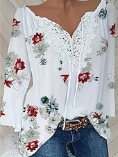 More information about Women's Summer Tops Flower Modern Long Sleeve V Neck Regular Tops White Summer