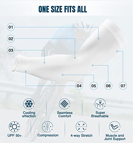 • All-Round Sun Protection - UPF 50+ protective technology works great to keep the harmful sun rays off your skin when golfing, shooting, running, bike riding, etc. No need for greasy sunscreen or long sleeves shirts. These uv sun protection arm sleeves shield your arms from sunburn and skin damage during long days in sun.