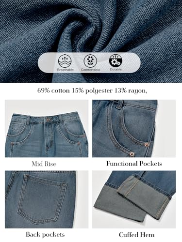 • Trendy Casual Style: These womens baggy jeans are designed with a mid rise, slouchy wide-leg silhouette, perfect for a trendy and casual look. The cuffed hemlines add a trendy and casual touch to your outfit
