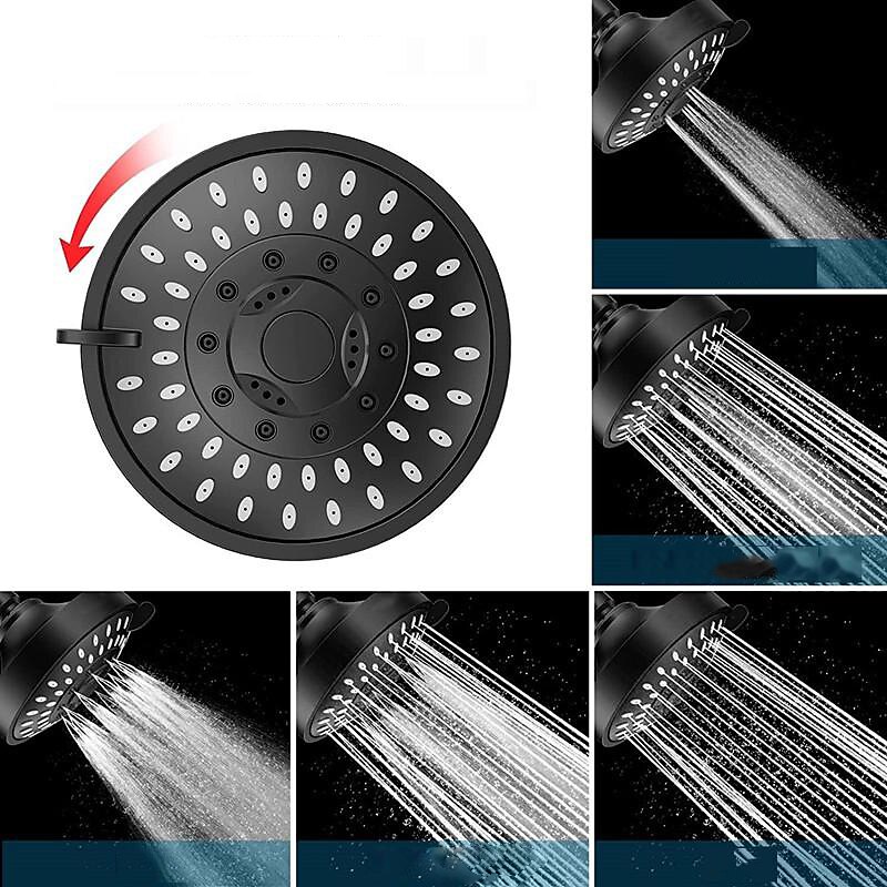 4 inch Rainfall Shower Head 5 Mode Sprayer Showerhead ABS, 360-degree Rotation High Pressure Overhead Shower Head Black Silver 6