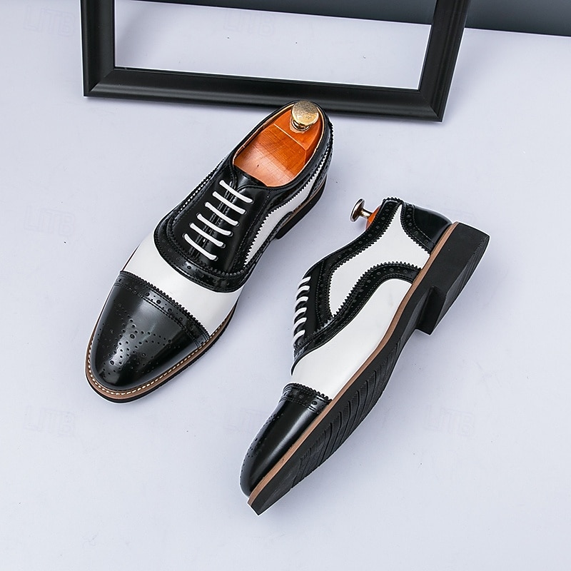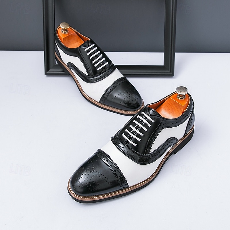 Men's Brown and White Brogue Oxford Shoes with Classic Perforated Design, British Style Leather Dress Shoes for Business, Weddings and Formal Events 1
