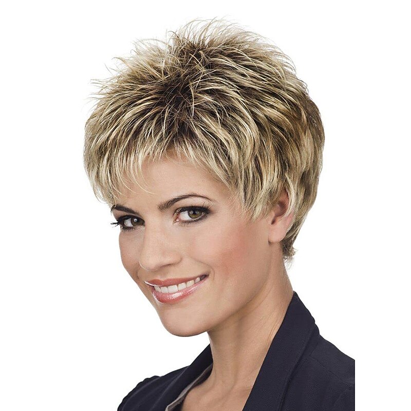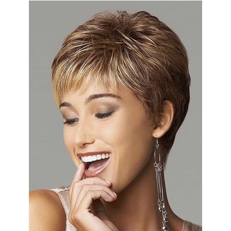 $23.99 - Short Dark Brown Mixed Blonde Highlight Pixie Cut Wigs with Bangs Synthetic Layered Wigs for Women Natural Hair Replacement Wigs 2025. Shop for cheap Older Wigs online? Buy at lightinthebox.com on sale today!