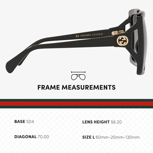 • Precision Fit and Comfort: The Gucci GG 0876S sunglasses feature a lens width of 60mm, a bridge of 20mm, a temple length of 130mm, a lens height of 56.2mm, and a diagonal measurement of 70.00mm, ensuring a perfect fit and maximum comfort for any wearer.