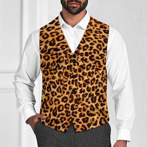 Animal Leopard Print Funny Men's Formal Suit Vest Casual Business Dress Waistcoat Printed Vest Slim Fit 1