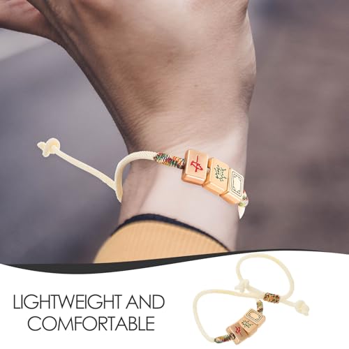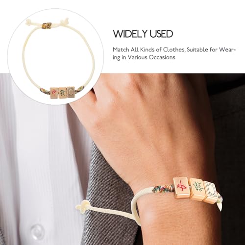 LOGOFUN 3PCS Chinese Mahjong Braided Bracelet Adjustable Woven Rope with Beige Thread Traditional Lucky Charm Jewelry for Daily Use Supplies 7
