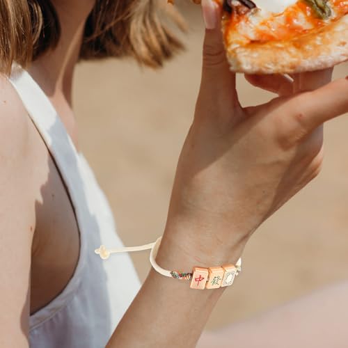 LOGOFUN 3PCS Chinese Mahjong Braided Bracelet Adjustable Woven Rope with Beige Thread Traditional Lucky Charm Jewelry for Daily Use Supplies 1