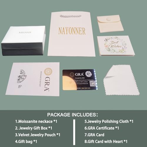 • Perfect Gift Choice - NAYONNER moissanite diamond jewelry necklace comes in exquisite gift packaging, complete with GRA certificate, handwritten card, Silver polishing cloth, Velvet bag, and gift bag. It is perfect gift for your loved one on various occasions such as birthdays, Valentine's Day, Mother's Day, Christmas, engagements, commitments, weddings or anniversaries. NAYONNER believes that everyone should experience the beauty and luxury of moissanite jewelry, regardless of their budget.