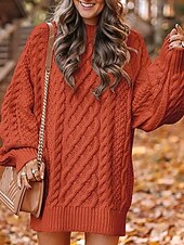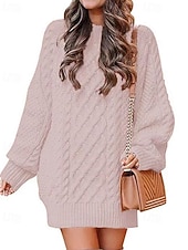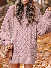 More information about Women's Sweater Fashion Casual Pure Color Ribbed Crew Neck Knitted Long Sleeve Regular Tops Knit Outdoor Daily Weekend Hot Pink Pink Fall Winter