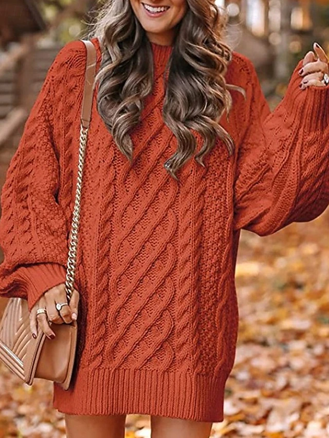HOT ! Women's Sweater Fashion Casual Pure Color Ribbed Crew Neck Knitted Long Sleeve Regular Tops Knit Outdoor Daily Weekend Hot Pink Pink Fall Winter