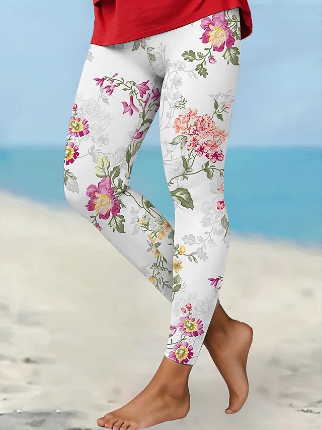 More information about Women's Leggings Vacation Vintage Fashion Ankle-Length High Waist Floral Graphic Printing Soft Breathable Stretchy Outdoor Daily Red Green Amethyst Spring Fall Winter Slim Fit