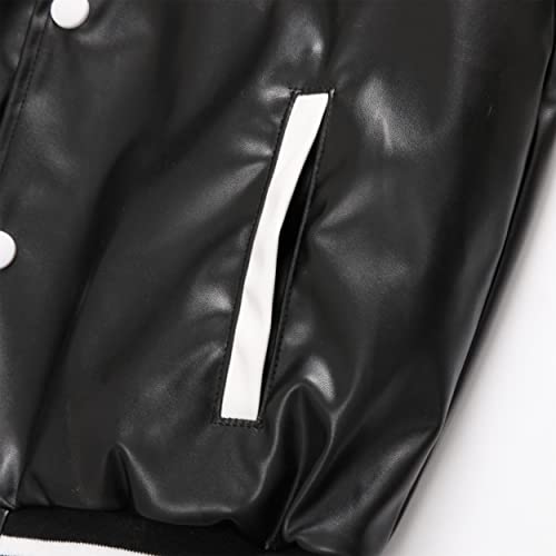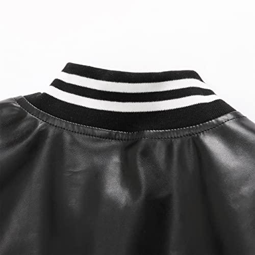 BAICAIYU Kids Baseball Leather Jackets Boys and Girls Varsity PU Letterman Coat Button Cardigan Bomber Lightweight Jacket 6