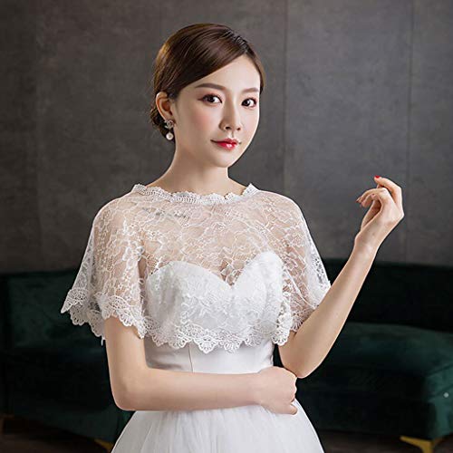 HOT ! Wedding Shawl Women Floral Lace Shawl Wrap Wedding Bridal Cover Up Tulle Shrug Cape, 28cm, Black