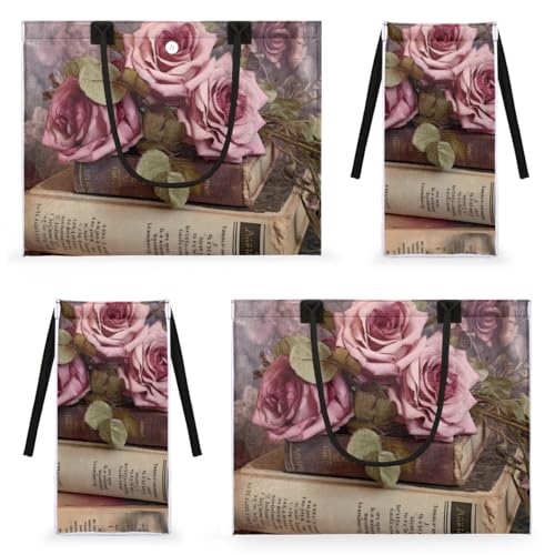 HOT ! Art Rose Books Tote Bag for Women Large Beach Bag Reusable Tote Bags for Work Travel Beach Shopping