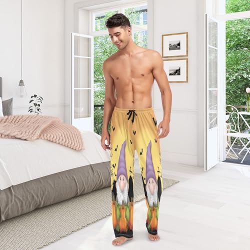 HOT ! Qilmy Halloween Gnome Men's Cotton Pajama Pants, Lightweight Lounge Sleepwear with Drawstring and Pocket