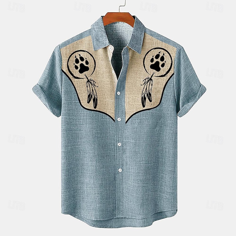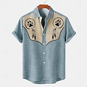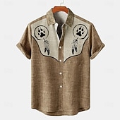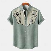 More information about Men's Shirt Linen Shirt Retro Shirts Vintage Shirt Ethnic Shirt Western Outdoor Work Blue Green khaki Short Sleeve Turndown Summer Spring Clothing Apparel