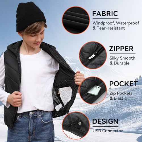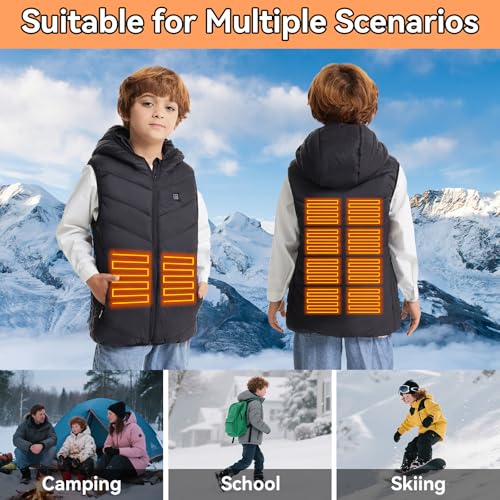 Kids Heated Vest, 10 Heating Zones Boys & Girls, Lightweight Nylon Fabric for School Skiing (Battery Not Included) 5