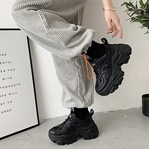Julymens Women's Platform Chunky Sneakers Lace Up Fashion Wedge Heel Black Dad Shoes 6