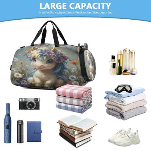 More information about Gym Travel Duffle Bag for Boys Girls Horse Sports Dance Bag with Shoe Compartment & Wet Pocket Football Kids Travel Bag Teens Sleepover Carry
