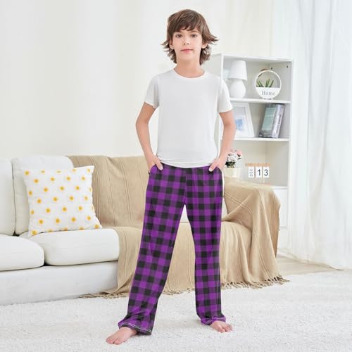 CaTaKu Boys Purple Buffalo Plaid Pants for Boys Girls Wide Leg Sweatpants Kids Long Bottoms with Pockets Size 6-14Y 6