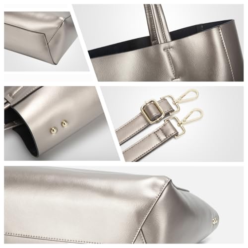 More information about Genuine Leather Tote Bags for Women Solid Color Metallic Shoulder Bag Beach Handbag and Purse Retro Tote for Travel