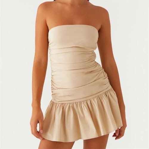More information about Women's Ruched Tube Top Vintage Holiday Strapless Sleeveless Slim Fit Flare Dress