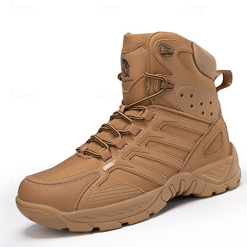 Men's Tan Outdoor Hiking Boots with Rugged Non-Slip Sole, Durable Construction, and Comfortable Fit for Outdoor Adventures