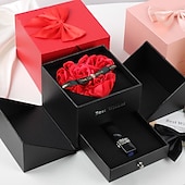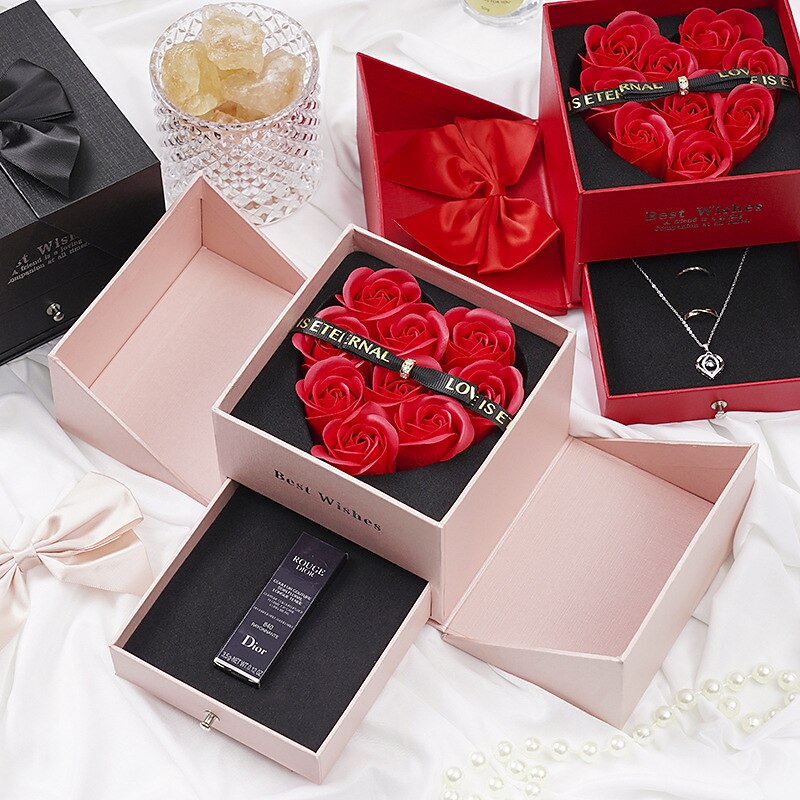 HOT ! Women's Day Gifts Valentine's Day Eternal Flower Jewelry Box Double-layer Rose Gift Box Lipstick Necklace Ring Earring Jewelry Box Valentine's Day Gift Box Mother's Day Gifts for MoM