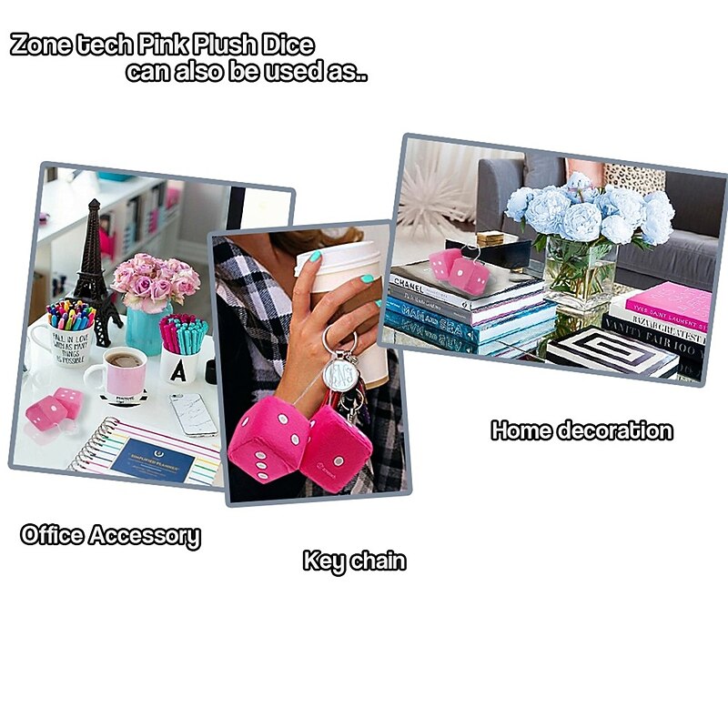 Highlights Product Selling Points: - RETRO CLASSIC: These plush dices give your car the ultimate retro look, reminiscent of the popular style in the 50’s and 60’s. They are a great accessory for your rearview mirror, adding a touch of nostalgia to your car. - PERSONAL EXPRESSION: The black and white print of the dice allows you to express your personality in a small and affordable way. Add a unique touch to your car's interior with these stylish plush dice. - VERSATILITY: Not only are these plush dice perfect for car decoration, but they also make great additions to your home and office. Moreover, they can be used as a keychain, adding a touch of style to your everyday essentials. - PREMIUM QUALITY: These plush dice are made from high-quality plush fabric material, ensuring their durability and long-lasting usage. The black printed design adds to their premium feel, giving you a product that is both stylish and reliable. - WASHABLE & BREATHABLE: The plush dice material is 100% washable, making it easy to keep them clean and looking brand new. Additionally, they are breathable and absorb moisture, eliminating any worry of lingering smells. These plush dice are suitable for any weather condition, ensuring a pleasant drive every time.