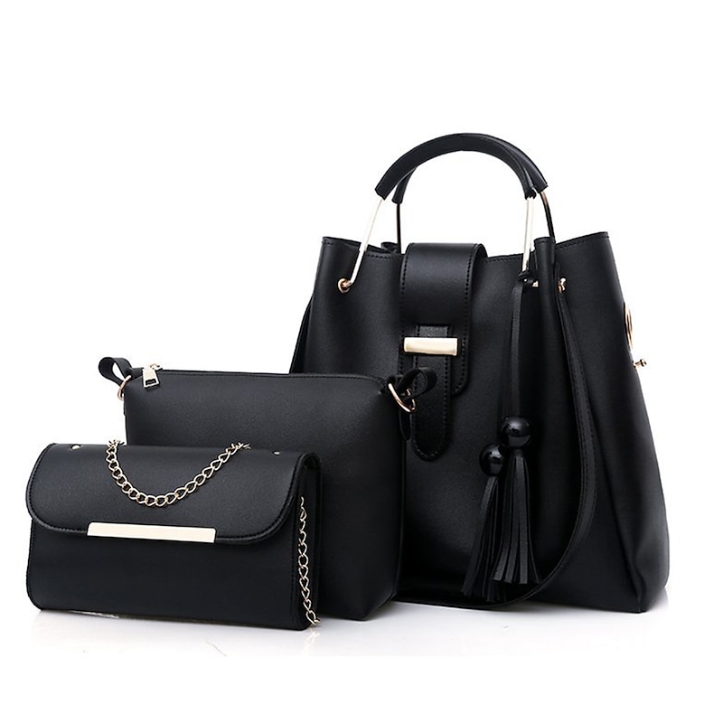 HOT ! Women's 3-Piece Handbag Set - Pink Faux Leather Tote, Shoulder Bag, and Chain Clutch with Tassel Detail for Elegant and Casual Use