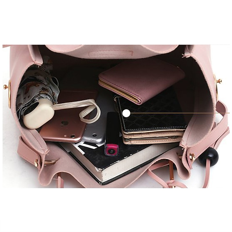 Women's 3-Piece Handbag Set - Pink Faux Leather Tote, Shoulder Bag, and Chain Clutch with Tassel Detail for Elegant and Casual Use 15