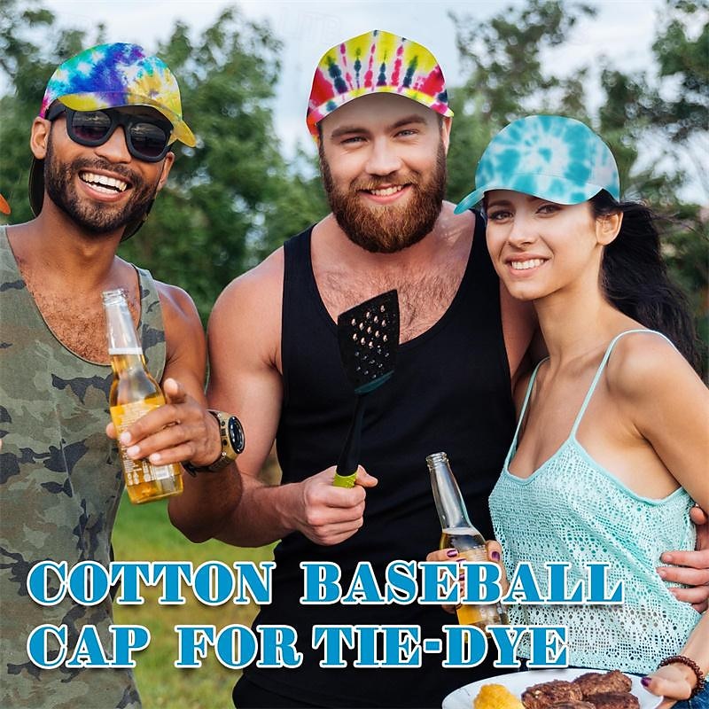 Cotton White Baseball Cap Is Used for Tie Dyeing Tie Dyeing Set Items Tie Dyeing Neutral Style Adjustable Solid Color Baseball Cap Suitable for Large Groups of Children Tie Dyeing Parties White 5