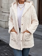 More information about Women's Sherpa Jacket Comfortable Breathable Jacquard Buttons Elegant Casual Plain Vacation Street Casual Daily Wear Single Breasted Long Hooded Regular Fit Long Sleeve Outerwear Beige Spring Fall
