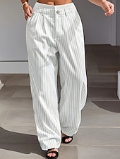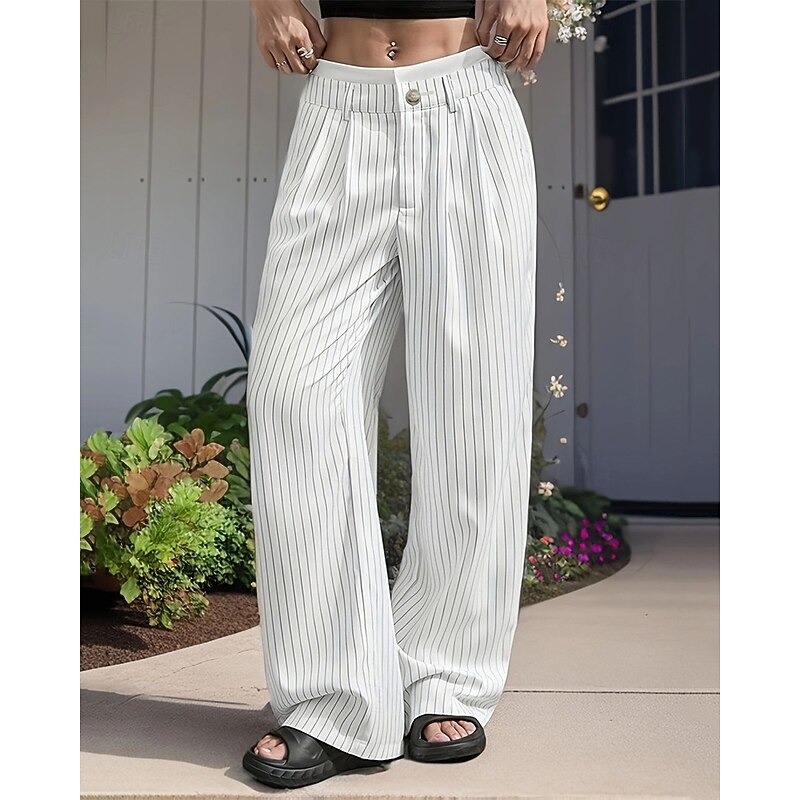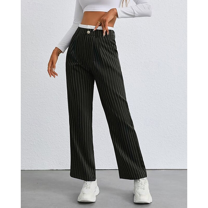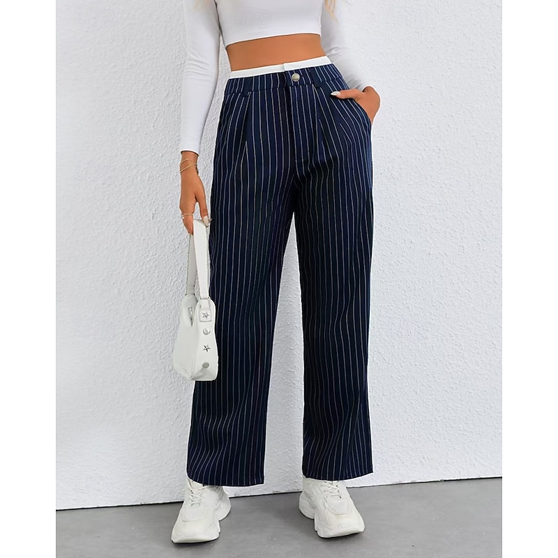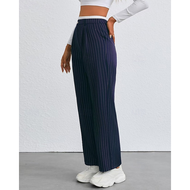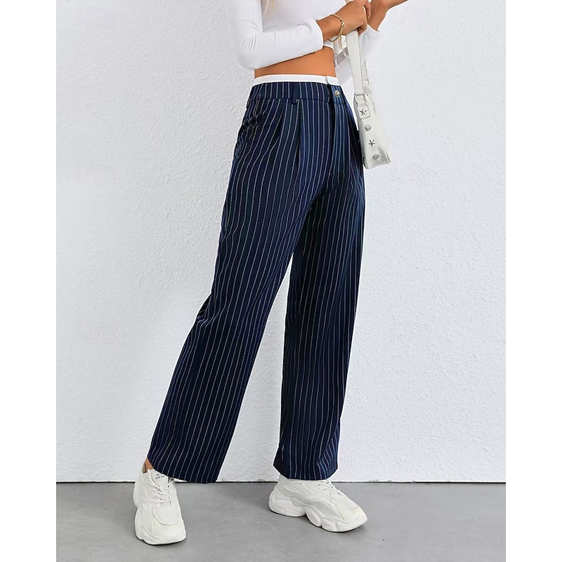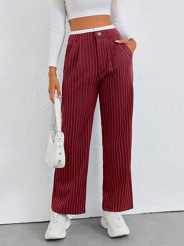 More information about Women's Wide Leg Slacks Pants Trousers Fashion Streetwear Full Length High Waist Striped Pocket Breathability Comfortable Street Daily Wear Going out Wine Black White Navy Blue Summer Spring Regular
