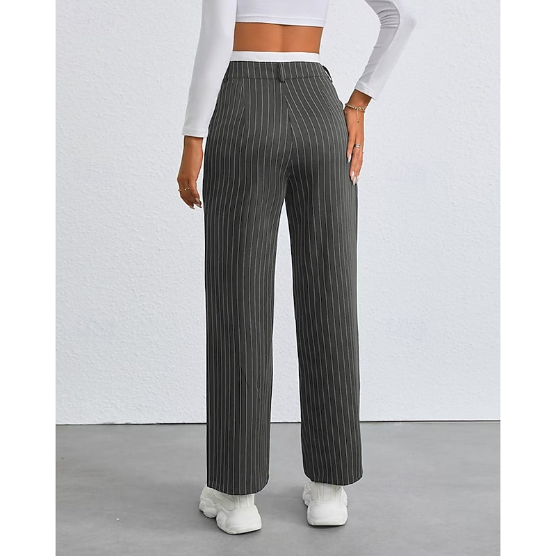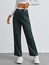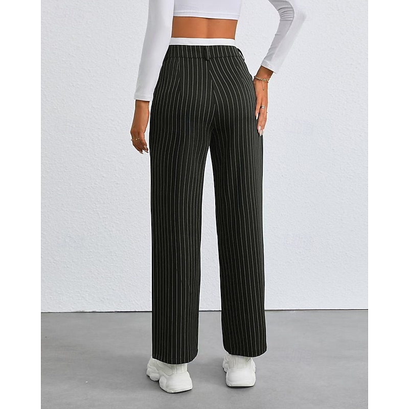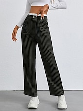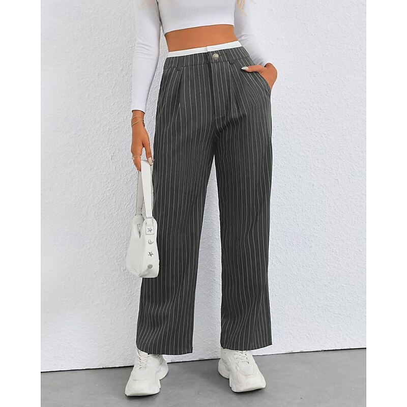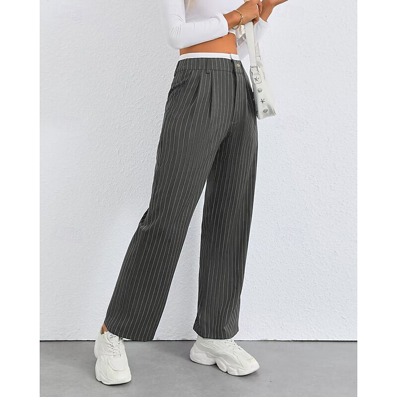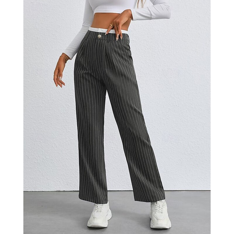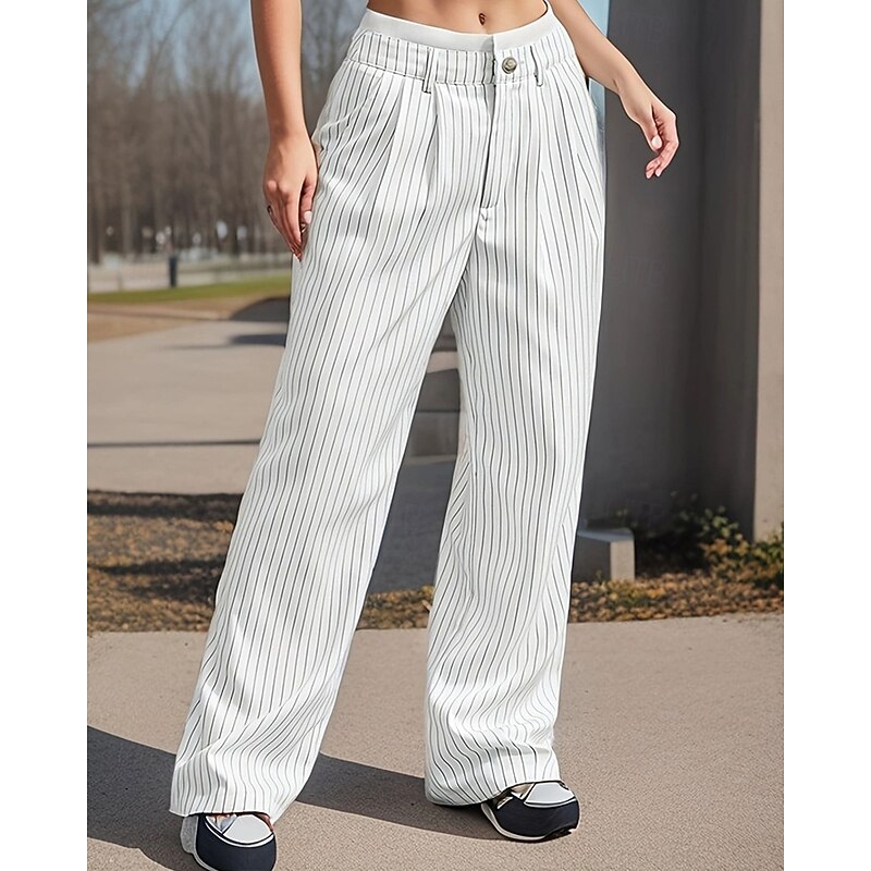 More information about Women's Wide Leg Slacks Pants Trousers Fashion Streetwear Full Length High Waist Striped Pocket Breathability Comfortable Street Daily Wear Going out Wine Black White Navy Blue Summer Spring Regular