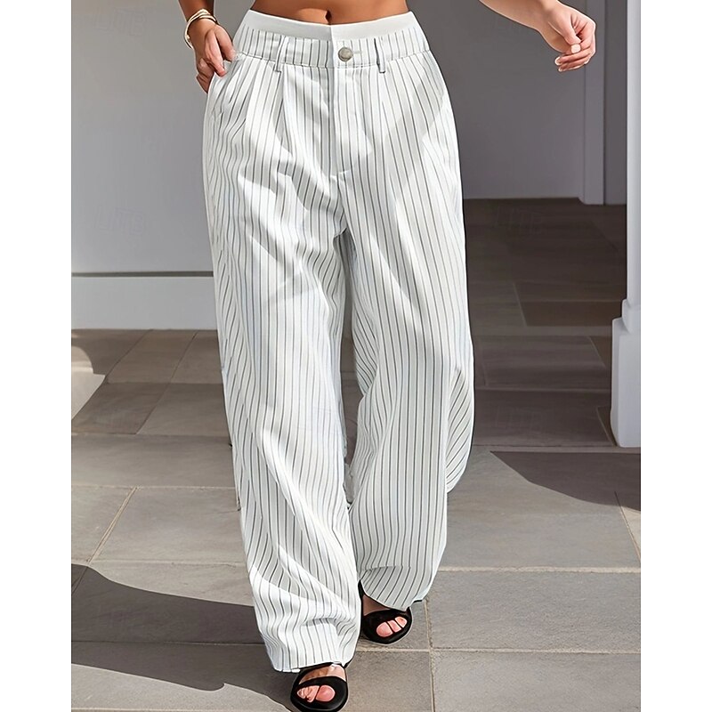 HOT ! Women's Wide Leg Slacks Pants Trousers Fashion Streetwear Full Length High Waist Striped Pocket Breathability Comfortable Street Daily Wear Going out Wine Black White Navy Blue Summer Spring Regular