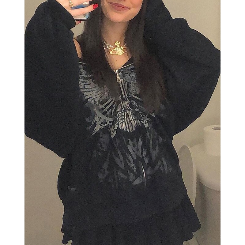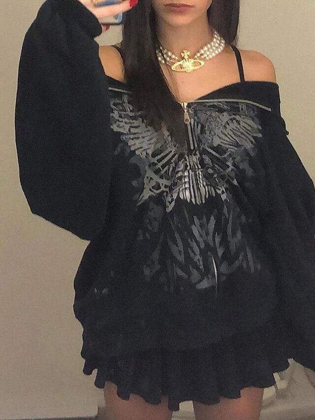 More information about Women's Pullover Hoodie Sweatshirt Floral Fashion Streetwear Long Sleeve Hooded Regular Tops Street Going out Zipper Print Black Fall Winter