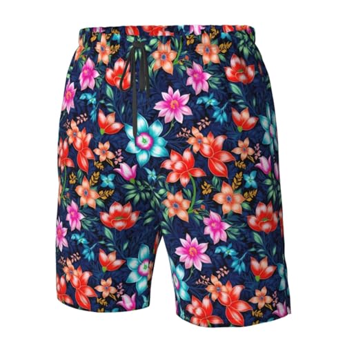 • High-Density Polyester Fabric: These Floral blue Print swim trunks crafted from high-density polyester yarn, ensuring softness, quick-drying properties, and breathability for maximum comfort in any situation.