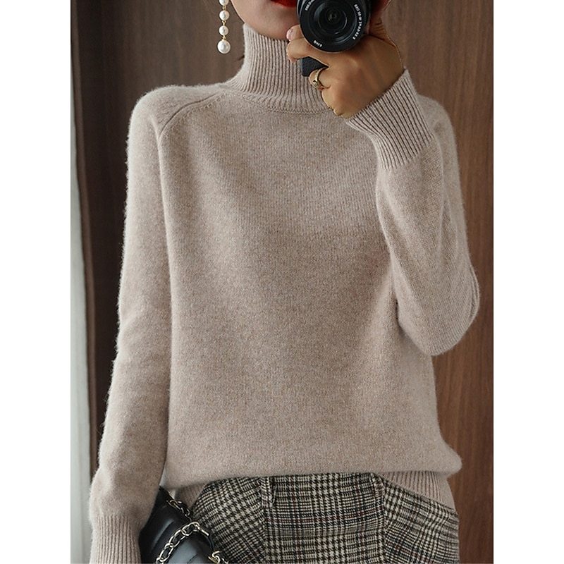 Highlights [Fabric:] This women's pullover sweater is crafted from high-quality polyester with a ribbed knit texture, offering both warmth and comfort. The micro-elasticity of the fabric ensures a snug and flexible fit, making it an essential addition to your fall and winter wardrobe. [Fit Type:] Featuring a regular fit, this sweater is designed for everyday wear, offering both comfort and style. Its long sleeves provide full coverage and are perfect for layering during the cooler months. [Design Highlights:] The sweater boasts a stand collar that not only adds to its elegant appearance but also provides additional warmth and protection against the cold. The solid color design enhances its versatility, making it easy to pair with a variety of outfits. [Occasions:] Ideal for a range of settings, this sweater is perfect for holidays, daily wear, and casual outings. Its blend of casual and fashion-forward style ensures you look chic whether you're out for a weekend adventure or running errands. [Size Range:] Available in sizes M, L, XL, and XXL, this sweater caters to a variety of body types, ensuring a flattering fit for all. Its versatility in sizing makes it accessible for different wearers, enhancing its appeal as a wardrobe staple.