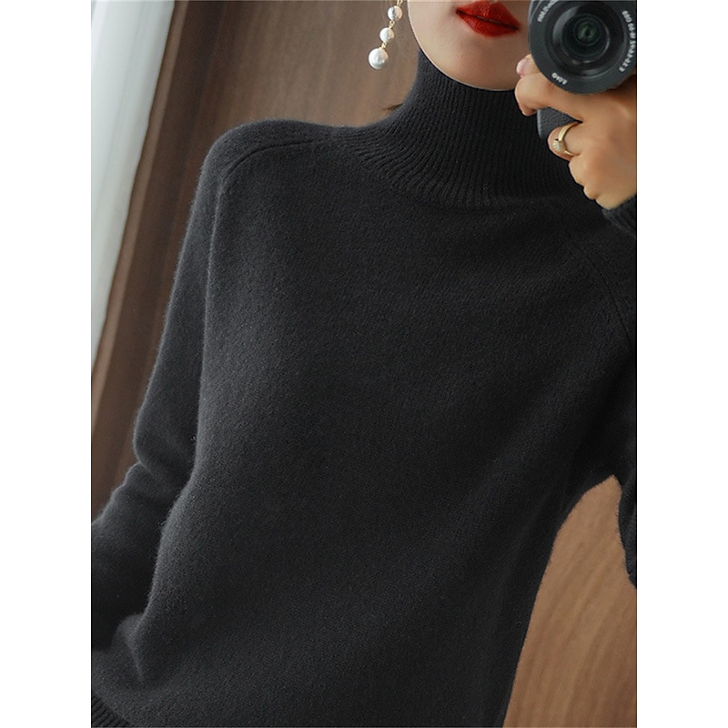 More information about Women's Pullover Sweater Jumper Fashion Streetwear Casual Solid Color Ribbed Stand Collar Knitted Long Sleeve Regular Tops Knit Outdoor Daily Holiday Black White Fall Winter