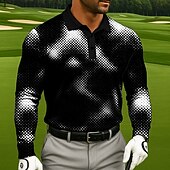 More information about Men's Geometic Golf Polo Long Sleeve Polo Shirts Lapel Casual Athleisure Daily Wear 3D Print Buttons Spring Fall Winter Black White