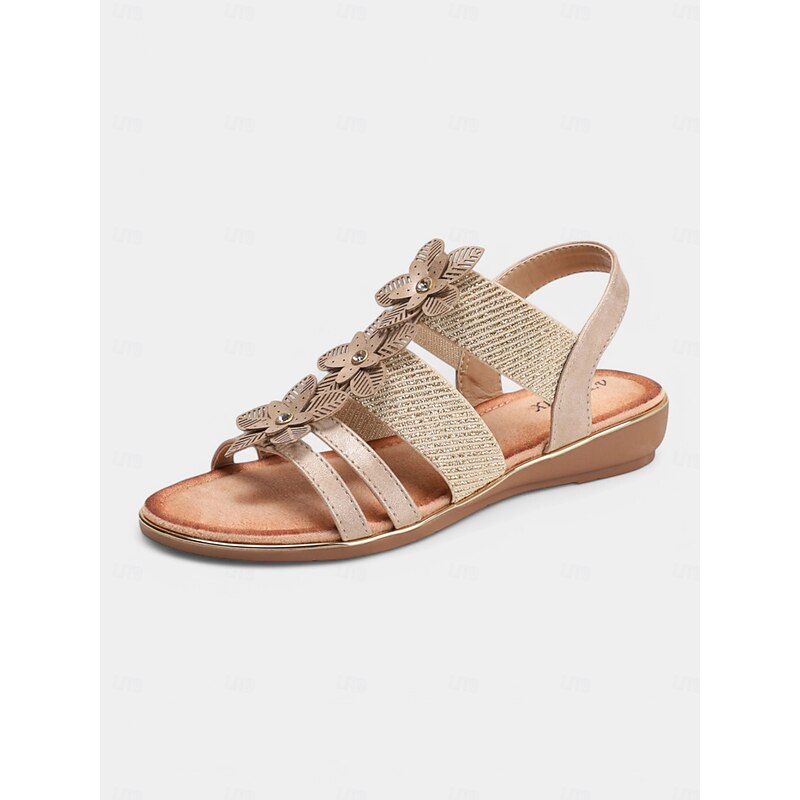 Women's Beige Floral Rhinestone Flat Sandals – Elegant Boho Style Wedding Shoes for Brides, Beach Ceremonies, and Summer Travel 1