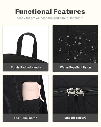Hynes Eagle Travel Laptop Backpack Quilted College Backpack for Women Puffer Casual Daypack Personal Item Bag for 16 Inch Classic Black 5