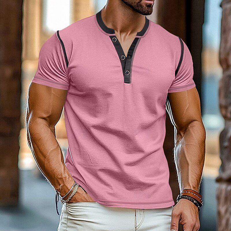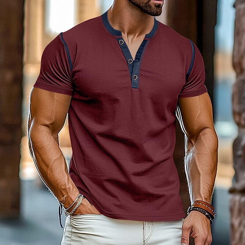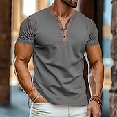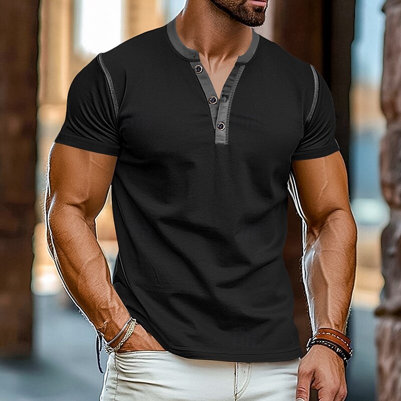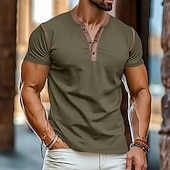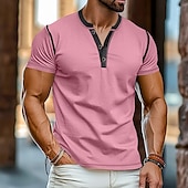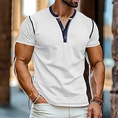 More information about Men's Henley Shirt Tee Top Short Sleeves Plain Raglan Sleeve Fashion Designer Basic Patchwork Henley Vacation Street Going out Summer Black White Yellow Henley T-Shirt