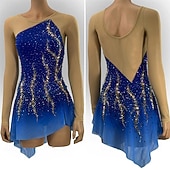 More information about Figure Skating Dress Women's Girls' Ice Skating Dress Navy Patchwork Asymmetric Hem Mesh Spandex High Elasticity Training Competition Skating Wear Classic Crystal / Rhinestone Long Sleeve Ice Skating